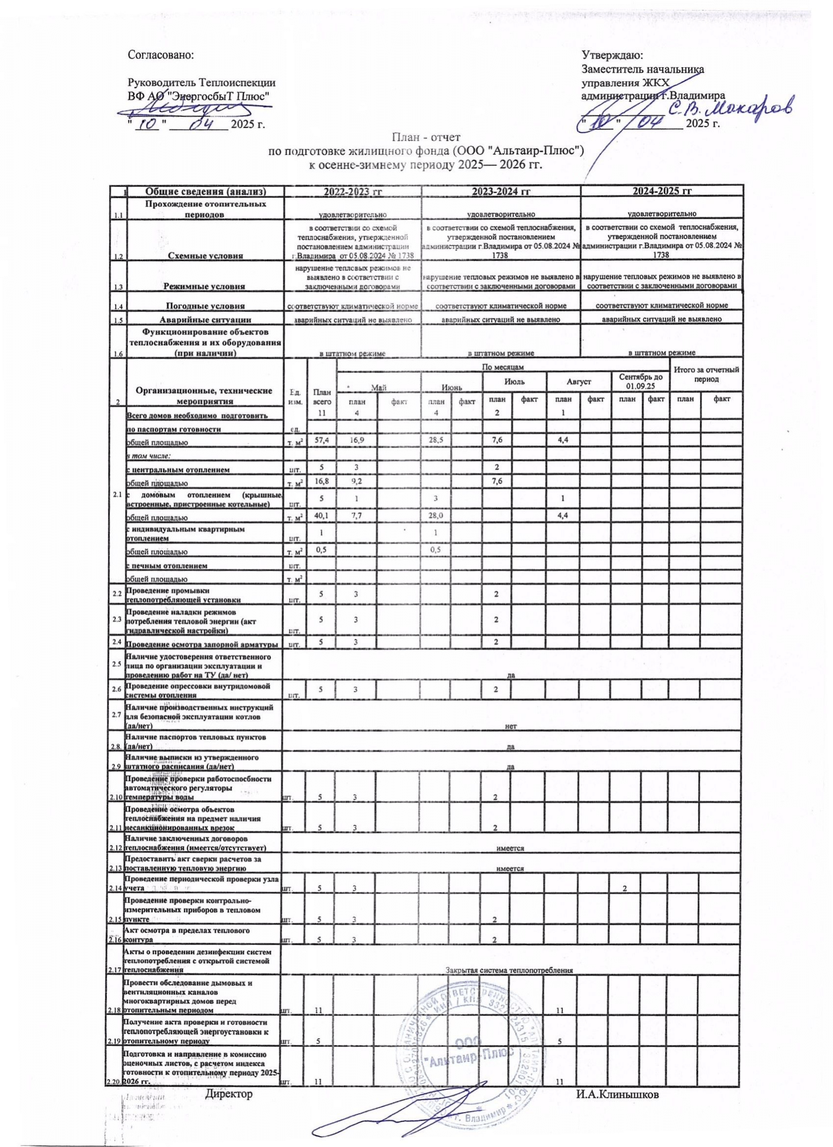 План-отчет по подготовке жилищного фонда к осенне-зимнему периоду 2025 - 2026 гг.